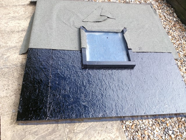 Once that was totally covered and starting to go tacky, I cut 2 lengths of roofing felt off ready.